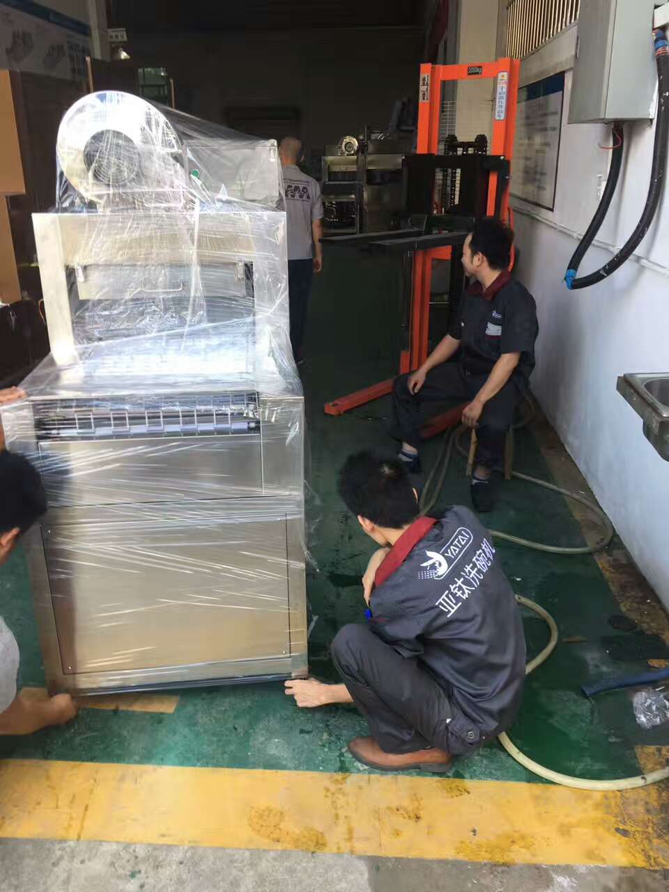 亞鈦消毒烘干一體機正式發(fā)貨佛山愛康太陽能投資有限公司,現(xiàn)場安裝,裝完后試機,佛山愛康太陽能投資有限公司的領(lǐng)導們看完餐具之后一致給予好評,洗碗機順利驗收,