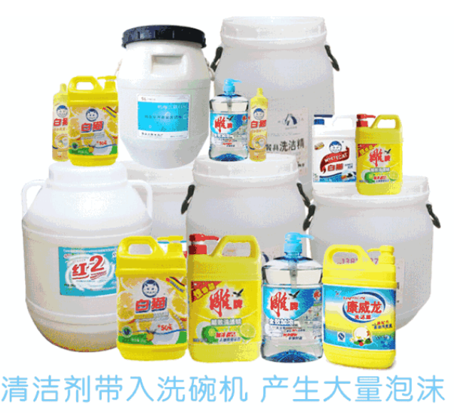 洗潔精是多種表面活性劑復(fù)合而成的清潔劑,特性是去油、去污,產(chǎn)生豐富、細(xì)膩的泡沫。在餐廳因?yàn)椴途邤?shù)量太多,洗碗工如果不用花灑過水,那就會帶入大量洗潔精的稀釋液,累積起來,將是產(chǎn)生泡沫的罪魁禍?zhǔn)住O赐霗C(jī)的工作原理是:高溫,高壓,高堿,在強(qiáng)大的噴射水流對沖下,水槽內(nèi)一定會產(chǎn)生大量泡沫。因洗碗機(jī)清潔劑自帶去油功能,所以,在前期預(yù)處理餐具時(shí),用少量洗潔精即可。