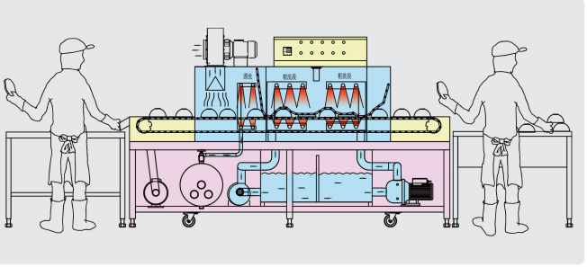 1、結(jié)構(gòu)特點(diǎn):產(chǎn)品選用SUS304不銹鋼材料制作,避免產(chǎn)生銹蝕而對(duì)餐具形成二次污染;清洗餐具采用平放式,可以更好地保證餐具的清洗效果,不會(huì)出現(xiàn)清洗死角。