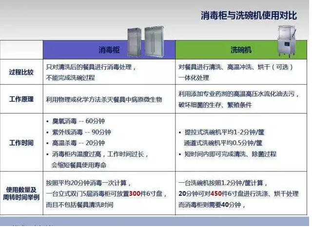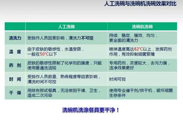 洗碗機特有的洗滌方式和洗滌環境,洗碗機具備良好的物理除菌功能,破壞細菌的滋生與生存條件,達到消毒功能。洗碗機用洗滌劑本身對各種細菌也有良好的抑制作用。商用洗碗機是餐廳、飯堂、酒店、餐具消毒中心等場所洗碗的最理想選擇。